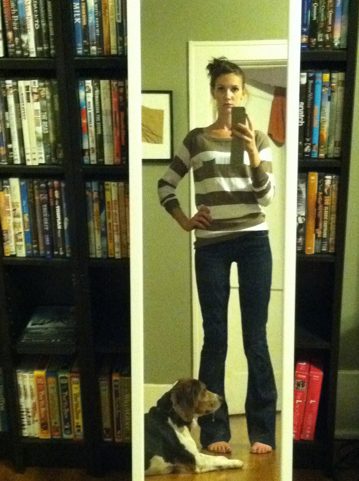 Also, I really need to spend time with friends, but I just get so hermit-y and quiet loving when he's gone. Whaddaya think- solitude or pals? It iiiissss supposed to be Friday night Grad Bar (and Bromance texted to say that it's some sort of free food night). I should go with the dog, huh?