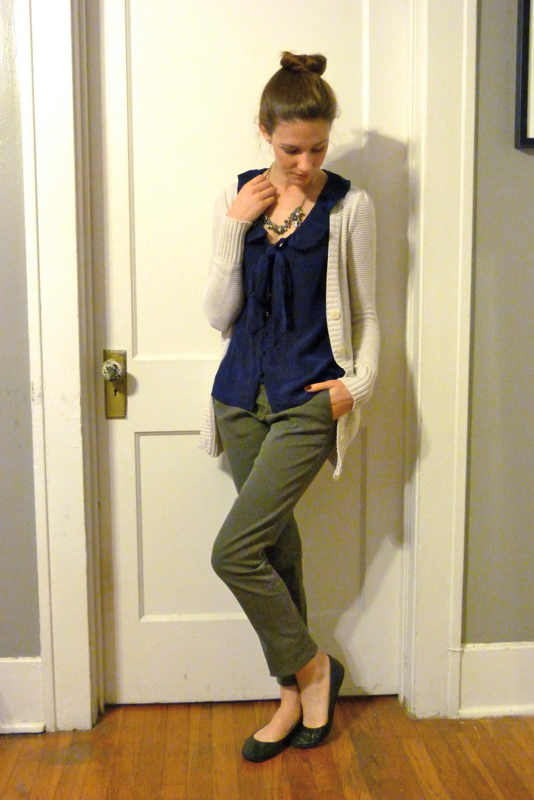 | Pants: Gap (old)... Blouse: Banana Republic via Buffalo Exchange...Cardigan: Target (really old)...Shoes: Kenneth Cole Reaction via Piperlime...Necklace: Target |