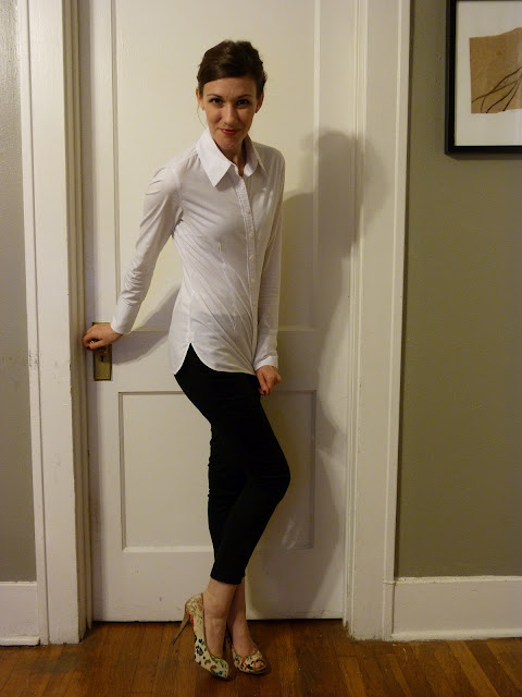 | Pants: Zara...Button-down: Express, thrifted...Shoes: Nine West, via Buffalo Exchange |
